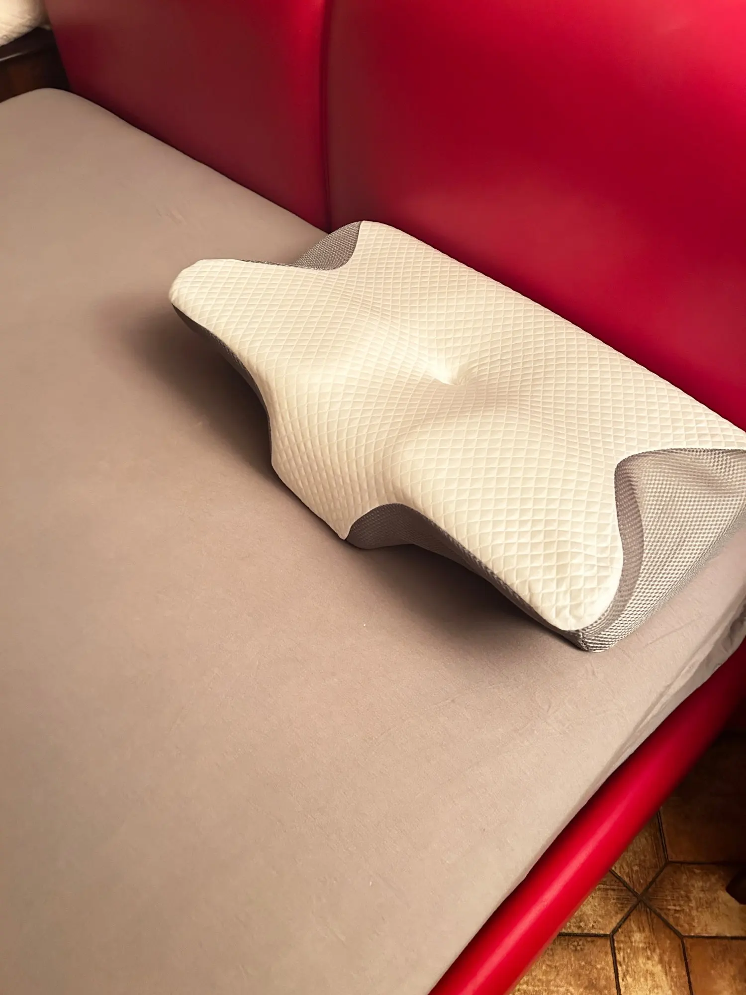 Gemaakt van hoogwaardig traagschuim , vormt het zich op natuurlijke wijze naar je nek en schouders en biedt het de hele nacht gelijkmatige ondersteuning. De middenholte vermindert drukpunten en bevordert een betere bloedsomloop, terwijl de verhoogde zijpanelen je houding stabiliseren en ochtendpijn voorkomen.